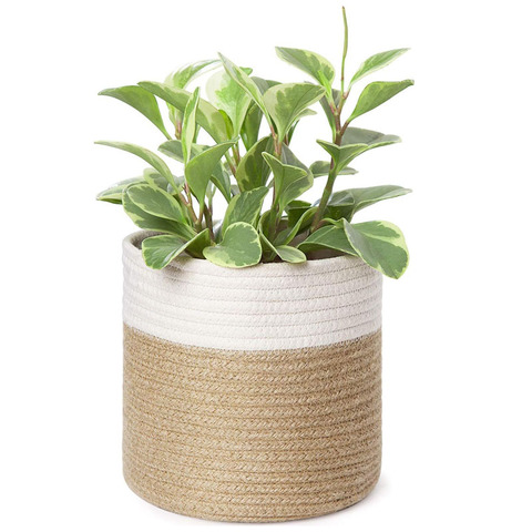 Vasos decorativos Cubra Lavanderia Bin Modern Woven Storage Basket Branco e Bege Algodão Corda Cestas De Plantas Com Alça