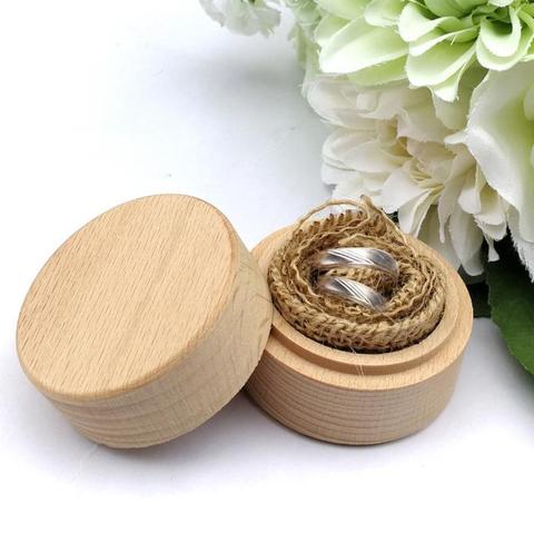 Personalizado Gravado Mini Jóias Redondas Caixa De Madeira De Casamento De Noivado Pequeno Anel De Madeira Caixa Com Logotipo Personalizado