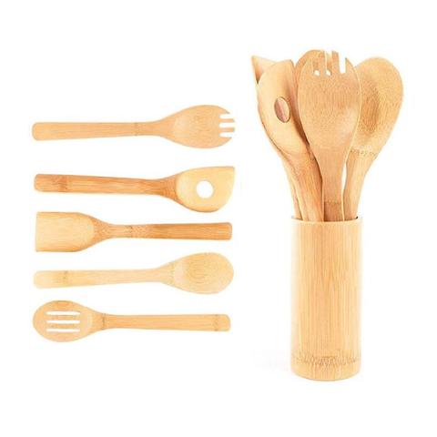 Groothandel Prijs Custom Logo Keuken Accessoires Mengen Serveren Bamboe Kookgerei Set Met Houder